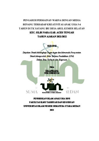 Apriana, Tri (2022) Pengaruh Permainan Warna Dengan Media Benang Terhadap Kreativitas Anak Usia 5-6 Tahun Di TK Sayang Ibu Desa Arul Kumer Selatan Kec. Silih Nara Kab. Aceh Tengah Tahun Ajaran 2021/2022. Skripsi thesis, Universitas Islam Negeri Sumatera Utara.