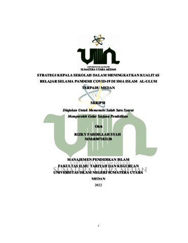 Syah, Rizky Fahdillah (2022) Strategi Kepala Sekolah Dalam meningkatkan Kualitas Belajar Selama Pandemi Covid-19, Di SMA Islam Al-Ulum Terpadu. Skripsi thesis, Universitas Islam Negeri Sumatera Utara.