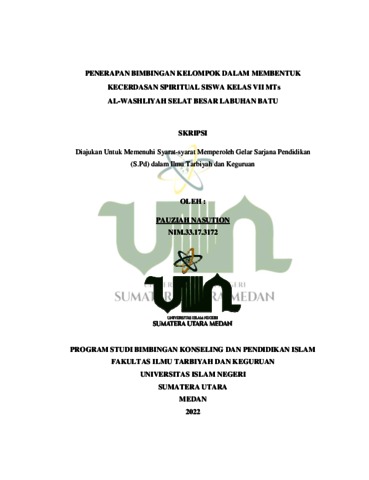 Nasution, Pauziah (2022) Penerapan Bimbingan Kelompok Dalam Membentuk Kecerdasan Spiritual Siswa Kelas VII MTs Al-Washliyah Selat Besar Labuhan Batu. Skripsi thesis, Universitas Islam Negeri Sumatera Utara.
