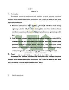 Penerapan Bimbingan Kelompok Dalam Membentuk Kecerdasan Spiritual Siswa Kelas VII MTs Al-Washliyah Selat Besar Labuhan Batu