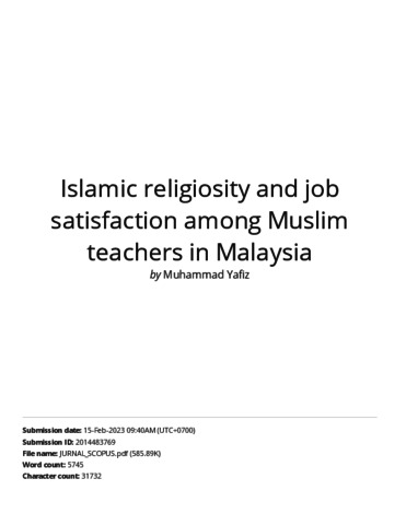 TURNITIN Islamic religiosity and job satisfaction among Muslim teachers in Malaysia.pdf Download (1MB) | Preview |