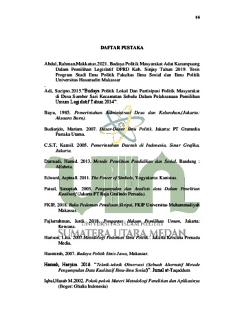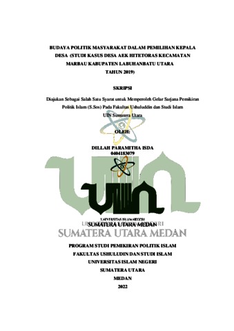 Isda, Dillah Paramitha (2022) Budaya Politik Masyarakat Dalam Pemilihan Kepala Desa (Studi Kasus Desa Aek Hitetoras Kecamatan Marbau Kabupaten Labuhanbatu Utara Tahun 2019). Skripsi thesis, Universitas Islam Negeri Sumatera Utara.