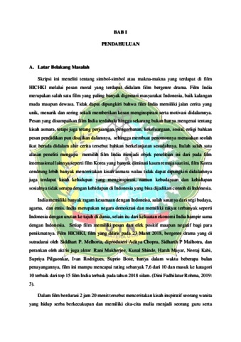 Penelitian ini berjudul Analisis Semiotika Pesan Moral Film Hichki. Penelitian ini menceritakan tentang seorang wanita yang memiliki syndrom tourette dan berkeinginan menjadi seorang guru, Namun ia kesulitan diterima lantaran penyakit langka nya. Selama lima tahun mencoba masuk ke berbagai sekolah akhirnya membuahkan hasil, ia diterima disalah satu sekolah tempatnya dahulu menimba ilmu setelah ditolak sebanyak lima kali disekolah tersebut. Namun ia diberikan murid-murid yang berlatar belakang dari keluarga prasejahtera sehingga membuatnya banyak tantangan untuk tetap bertahan menghadapi tingkah laku murid kelasnya yang berjumlah 14 siswa. Tujuan penelitian ini memberikan pemaknaan lewat analisis semiotika sekaligus pesan moral yang secara tidak langsung mempengaruhi pikiran dan prilaku khalayak saat menonton film ini. Penelitian ini menggunakan analisis semiotika model Roland Barthes pendekatan kualitatif. Hasil yang didapat dari penelitian ini bahwa pesan moral yang terkandung didalam film hichki yaitu kegigihan, mandiri, pantang menyerah, ketulusan, kekompakan, kejujuran, dan kasih sayang yang tidak hanya diberikan oleh pemeran utama tetapi juga para tokoh lainnya.