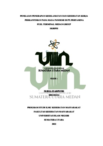 Syahputri, Nurul (2022) Penilaian Penerapan Keselamatan Dan Kesehatan Kerja Perkantoran Pada Masa Pandemi Di Pt.Pertamina Fuel Terminal Medan Group. Skripsi thesis, Universitas Islam Negeri Sumatera Utara.