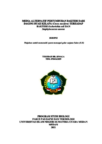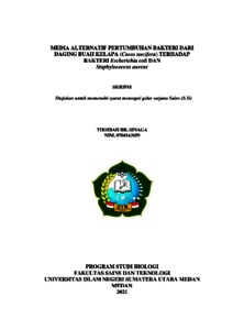 Sinaga, Thoibah Br. (2021) Media Alternatif Pertumbuhan Bakteri dari Daging Buah Kelapa (Cocos Nucifera) terhadap Bakteri Escherichia coli dan Staphylococcus aureus. Skripsi thesis, Universitas Islam Negeri Sumatera Utara.