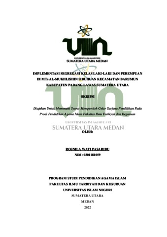 Pasaribu, Rosnila Wati (2022) Implementasi Segregasi Kelas Laki-Laki dan Perempuan di MTs Al-Mukhlishin Sibuhuan Kecamtan Barumun Kabupaten Padang Lawas Sumatera Utara. Skripsi thesis, Universitas Islam Negeri Sumatera Utara.