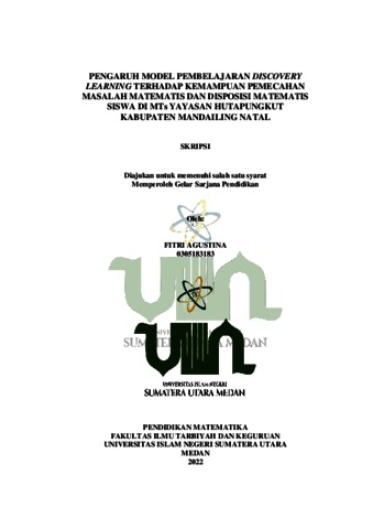 Agustina, Fitri (2022) Pengaruh Model Pembelajaran Discovery Learning Terhadap Kemampuan Pemecahan Masalah Matematis Dan Disposisi Matematis Siswa Di MTs Yayasan Hutapungkut Kabupaten Mandailing Natal. Skripsi thesis, Universitas Islam Negeri Sumatera Utara.