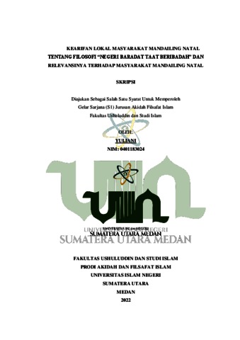 Yuliani, Yuliani (2022) Kearifan Lokal Masyarakat Mandailing Natal Tentang Filosofi “Negeri beradat Taat Beribadah” dan Relevansinya Terhadap Masyarakat Mandailing Natal. Skripsi thesis, Universitas Islam Negeri Sumatera Utara.