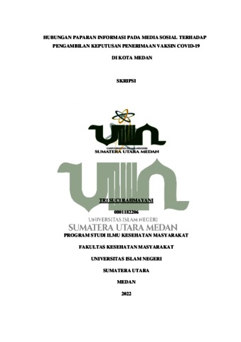 Rahmayani, Tri Suci (2022) Hubungan Paparan Informasi Pada Media Sosial Terhadap Pengambilan Keputusan Penerimaan Vaksin COVID-19 Di Kota Medan. Skripsi thesis, Universitas Islam Negeri Sumatera Utara.