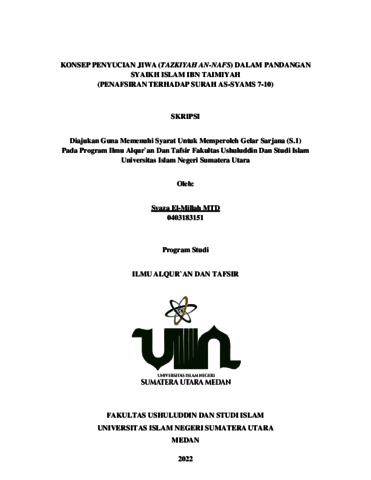 MTD, Syaza El- Millah (2022) Konsep Penyucian Jiwa (Tazkiyah An- Nafs ) Dalam Pandangan Syaikh Islam Ibn Taimiyyah ( Penafsiran Terhadap Surah Asy-Syams 7-10). Skripsi thesis, Universitas Islam Negeri Sumatera Utara.