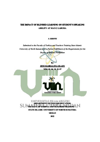 Silaen, Zeni Mahdalena (2022) THE IMPACT OF BLENDED LEARNING ON STUDENT’S SPEAKING ABILITY AT MAN 2 LABURA. Skripsi thesis, Universitas Islam Negeri Sumatera Utara.