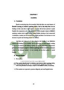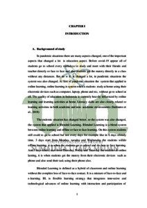 The title of this research is “ The Impact of Blended Learning on Student’s Speaking Ability at MAN 2 LABURA”. The researcher took the data from MAN 2 LABURA with doing observation and also interview. The researcher use qualitative descriptive method to describe the detail about the impact of Blended Learning on student’s speaking ability. To find out the result of analysed that had conducted and describe the impact of Blended Learning on student’s speaking ability, the instrumen that researcher used in this researcher are observation, interview and documentation. Researcher took two palces to do observation because blended learning has two learning style, offlin eand online. The first observation took place at school especially school’s garden, and then the second took place at student’s house because they do offline learning. After the researcher analysing the data about the impact of Blended Learning on students’s speaking ability and it was ; students did not have partner to speak English, the assignments and exercises given are not enough to improve student’s speaking, students lack in motivation to speak English, missing or lack memorized vocabularies, students are not focussed on studying and there is no increase or even decrease on grade and learning process for students. Blended Learning have negative impact on their speaking ability, especially when they doing Blended Learning.