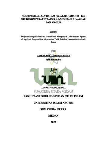 Syah, Haekal Pratomo Rifan (2022) UmmatanWasatanDalam QS. Al-Baqarah /2 : 143; Studi Komparatif Tafsir Al-Mishbah, Al-Azhar Dan An-Nur. Skripsi thesis, Universitas Islam Negeri Sumatera Utara.