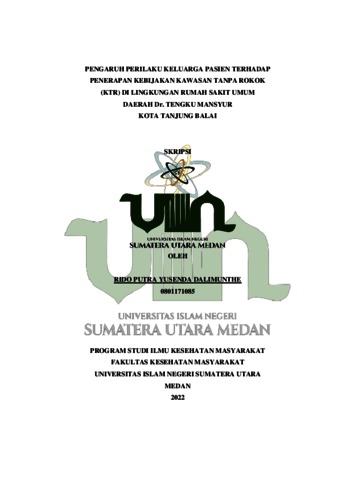 Dalimunthe, Rido Putra Yusenda (2022) Pengaruh Perilaku Keluarga Pasien Terhadap Penerapan Kebijakan Kawasan Tanpa Rokok (KTR) Di Lingkungan Rumah Sakit Umum Daerah Dr. Tengku Mansyur Kota Tanjung Balai. Skripsi thesis, Universitas Islam Negeri Sumatera Utara.
