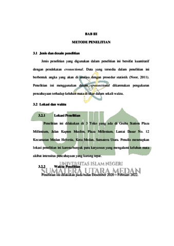 Faradhila, Reika (2022) Hubungan Intensitas Pencahayaan Dengan Keluhan Mata Pada Pekerja Jasa Service handphone Di Toko Graha Station Plaza Millenium Medan. Skripsi thesis, Universitas Islam Negeri Sumatera Utara.