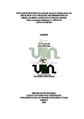 Asyari, Auly (2022) Pengaruh Penurunan Kadar Mn dan KMnO4 Dalam Air Sumur Gali Menjadi Air Bersih Dengan Media Karbon Aktif Kulit Pisang Kepok (Musa acuminate balbisiana C.) Dengan Aktivator HCl. Skripsi thesis, Universitas Islam Negeri Sumatera Utara.