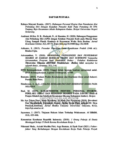 Haryani, Sri Puspita (2022) Hubungan Penggunaan Alat Pelindung Diri Dengan Keluhan Scabies Pada Nelayan Di Kelurahan Belawan II. Skripsi thesis, Universitas Islam Negeri Sumatera Utara.