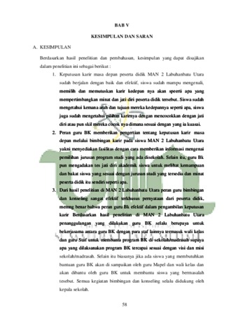 Peran Guru Bimbingan dan Konseling Dalam Pengambilan Keputusan Karir Pada Peserta Didik Madrasah Aliyah 2 Labuhanbatu Utara