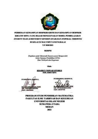 Sitorus, Khairun Niswah (2021) Perbedaan Kemampuan Berpikir Kritis dan Kemampuan berpikir Kreatif Siswa yang Diajar Menggunakan Model Pembelajaran Student Team Achievement Division (STAD) dan Snowball Throwing di Kelas XI MAS YMPI Tanjungbalai. Skripsi thesis, Universitas Islam Negeri Sumatera Utara.