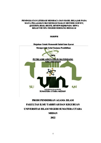 Penelitian yang dilakukan berjudul “Peningkatan Literasi Membaca Dan Hasil Belajar Pada Mata Pelajaran Ski Menggunakan Metode Survey,Question, Read, Recite, Review (SQ3R) Pada Siswa Kelas VIII Mts Negeri Serdang Bedagai”, yang dilatar belakangi dari hasil pra tindakan berupa wawancara dan survei peneliti terhadap guru mata pelajaran SKI Ibu Wahyuni S.Pd.I dan beberapa siswa kelas VIII MTs Negeri Serdang Bedagai diketahui bahwa hasil belajar dan literasi membaca siswa masih rendah dibuktikan dengan data penilaian Evaluasi Hasil Belajar KD di semester genap Tahun Pelajaran 2021/2022, yakni dari 36 siswa yang mengikuti proses belajar masih banyak siswa yang belum mencapai KKM, hanya sekitar 9 orang siswa yang mencapai KKM. Selain masih rendahnya pencapaian KKM juga masih banyak siswa yang ketika dijelaskan belum merasa paham, karena rendahnya literasi membaca siswa. Metodologi menggunakan penelitian tindakan kelas (PTK), peneliti bertindak sebagai guru dan mitra kolaborasi sebagai observer. Pembelajaran dilakukan selama 2 siklus dengan 4 kali pertemuan. Metode pengumpulan data lembar observasi, angket, evaluasi nilai siswa, ujian tertulis. Hasil penelitian dengan penerapan pembelajaran menggunakan metode SQ3R adalah pada siklus I dapat dilihat dari aktivitas siswa dalam proses pembelajaran yang semangkin meningkat dalam siklusnya, yaitu nilai rata-rata siklus I 64,29 menjadi 80,73 di siklus peningkatan nilai rata-rata dari siklus I dan siklus II mencapai 16,44. Dari siklus 1 perolehan nilai hasil tes msih di bawah nilai KKM 75 sedangkan di siklus II siswa meningkat hampir semuanya mencapai nilai KKM ≥75 Berdasarkan pada temuan penelitian di atas maka pendekatan pembelajran yang berpusat pada peserta didik, layaknya diterapkan oleh guru sebagai satu solusi untuk meningkatkan kualitas pembelajaran pada mata pelajaran SKI.