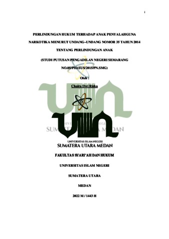 Rizka, Chaira Dwi (2022) Perlindungan Hukum Terhadap Anak Penyalahguna Narkotika Menurut Undang–Undang Nomor 35 Tahun 2014 Tentang Perlindungan Anak (Studi Putusan Pengadilan Negeri Semarang No.05/Pid.Sus/2015/Pn.Smg). Skripsi thesis, Universitas Islam Negeri Sumatera Utara.