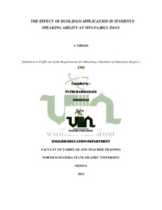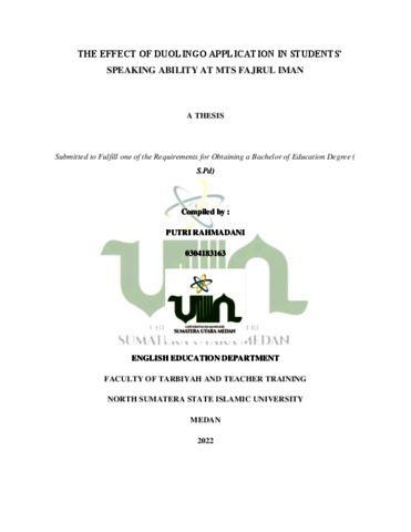 Rahmadani, Putri (2022) The Effect of Duolingo Application in Students Speaking Ability at Mts Fajrul Iman. Skripsi thesis, Universitas Islam Negeri Sumatera Utara.