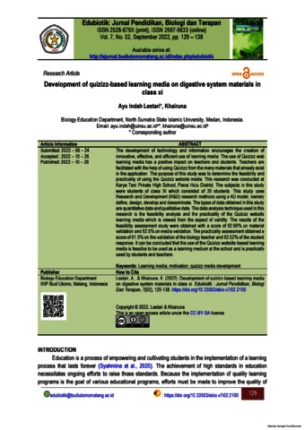Lestari, Ayu Indah and Khairuna, Khairuna (2022) Development Of Quizziz Based Learning Media On Digestive System Materials In Class XI. Edubiotik: Jurnal Pendidikan, Biologi dan Terapan, 7 (2). pp. 129-138. ISSN 2597-9833