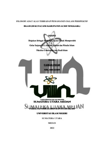 Indah, Fasrah (2022) Filosofi Adat Alas Terhadap Pemamanen Dalam Perspektif Islam (di Kutacane Kabupaten Aceh Tenggara). Skripsi thesis, Universitas Islam Negeri Sumatera Utara.