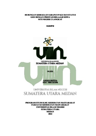 Septia, Anggi (2022) Hubungan Kebiasaan Sarapan Pagi Dan Status Gizi Dengan Prestasi Belajar Siswa Mts Negeri 2 Langkat. Skripsi thesis, Universitas Islam Negeri Sumatera Utara.