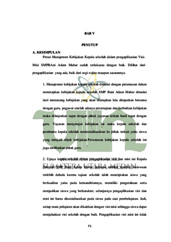 | Uncontrolled Keywords: | Peran Kebijakan Kepala Sekolah, visi-misi |