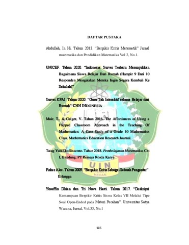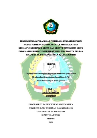Sabrina, Annisa (2022) Pengembangan Perangkat Pembelajaran LKPD dengan Model Flipped Classroom untuk Meningkatkan Kemampuan Berpikir Kritis dan Kreatif Siswa pada Materi Limit Fungsi Kelas XI SMA Swasta Sultan Iskandar Muda Medan. Skripsi thesis, Universitas Islam Negeri Sumatera Utara.
