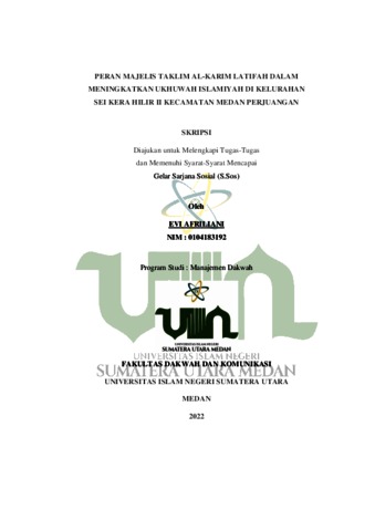 Afriliani, Evi (2022) Peran Majelis Taklim Al Karim Latifah dalam Meningkatkan Ukhuwah Islamiyah di Kelurahan Sei Kera Hilir II Kecamatan Medan Perjuangan. Skripsi thesis, Universitas Islam Negeri Sumatera Utara.