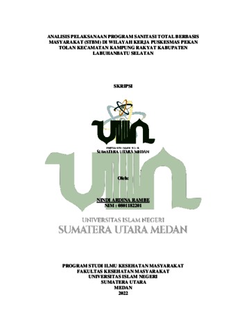 Rambe, Nindi Ardina (2022) Analisis Pelaksanaan Program Sanitasi Total Berbasis Masyarakat (STBM) di Wilayah Kerja Puskesmas Pekan Tolan Kecamatan Kampung Rakyat Kabupaten Labuhanbatu Selatan. Skripsi thesis, Universitas Islam Negeri Sumatera Utara.