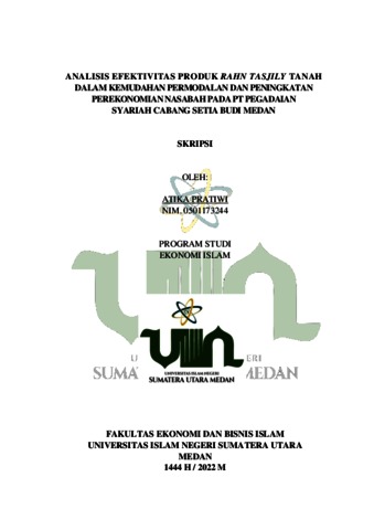 Pratiwi, Atika (2022) Analisis Efektivitas Produk Rahn Tasjily Tanah Dalam Kemudahan Permodalan Dan Peningkatan Perekonomian Nasabah Pada PT Pegadaian Syariah Cabang Setia Budi Medan. Skripsi thesis, Universitas Islam Negeri Sumatera Utara.