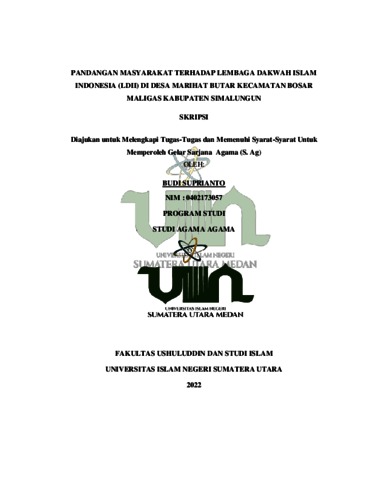 Suprianto, Budi (2022) Pandangan Masyarakat Terhadap Lembaga Dakwah Islam Indonesia (LDII) di Desa Marihat Butar Kecamatan Bosar Maligas Kabupaten Simalungun. Skripsi thesis, Universitas Islam Negeri Sumatera Utara.