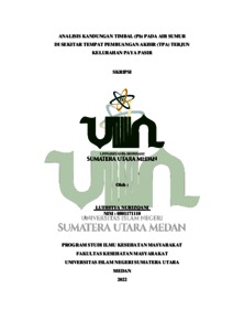 Nurizqani, Luthfiya (2022) Analisis Kandungan Timbal (Pb) Pada Air Sumur Di Sekitar Tempat Pembuangan Akhir (TPA) Terjun Kelurahan Paya Pasir. Skripsi thesis, Universitas Islam Negeri Sumatera Utara.
