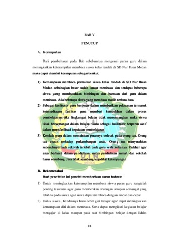 Sesuai dengan rumusan masalah, penelitian ini bertujuan: (1) untuk mengetahui kemampuan membaca pada siswa kelas rendah di SD Nur Ihsan, (2) untuk mengetahui peran guru sebagai fasilitator, pembimbing, dan motivator dalam meningkatkan keterampilan membaca siswa di SD Nur Ihsan, (3) untuk mengetahui kendala terkait masalah yang dihadapi guru dalam memainkan perannya sebagai fasilitator, pembimbing, dan motivator untuk meningkatkan kemampuan membaca siswa di SD Nur Ihsan Medan Penelitian ini merupakan penelitian kualitatif deskriptif yaitu berupa data- data yang didapat baik berupa tertulis maupun lisan seseorang yang berkaitan subjek dalam penelitian ini ialah guru kelas rendah dan kepala sekolah SD Nur Ihsan Medan. dalam proses pengumpulan data peneliti menggunakan tiga metode pengumpulan data, yaitu observasi, wawancara, dan dokumentasi Hasil penelitian diperoleh bahwa peran guru dalam meningkatkan keterampilan membaca pada siswa kelas rendah sudah dilaksanakan sesuai dengan ketentuan. kemampuan membaca siswa kelas rendah di SD Nur Ihsan Medan sebahagian besar sudah lancar membaca dan terdapat beberapa siswa yang membutuhkan bimbingan dan bantuan dari guru dalam membaca. Ada beberapa siswa yang membaca masih terbata-bata. Sebagai fasilitator guru berperan dalam memberikan pelayanan termasuk ketersediaan fasilitas guna memberi kemudahan dalam proses pembelajaran.
