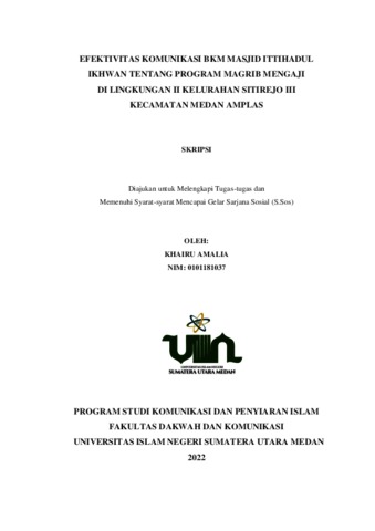 Amalia, Khairu (2022) Efektivitas Komunikasi BKM Masjid Ittihadul Ikhwan Tentang Program Magrib Mengaji di Lingkungan II Kelurahan Sitirejo III Kecamatan Medan Amplas. Skripsi thesis, Universitas Islam Negeri Sumatera Utara.