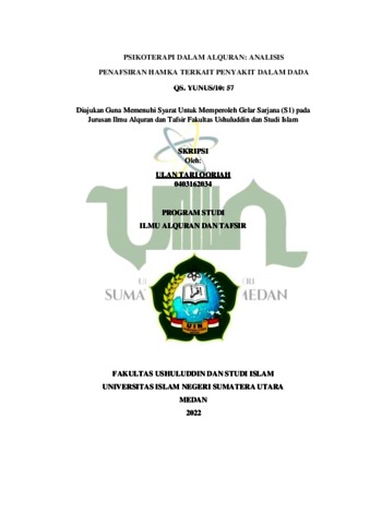 Qoriah, Ulan Tari (2022) Psitoterapi dalam Alquran: Analisis Penafsiran Hamka terkait Penyakit dalam Dada QS.Yunus/10: 57. Skripsi thesis, Universitas Islam Negeri Sumatera Utara.