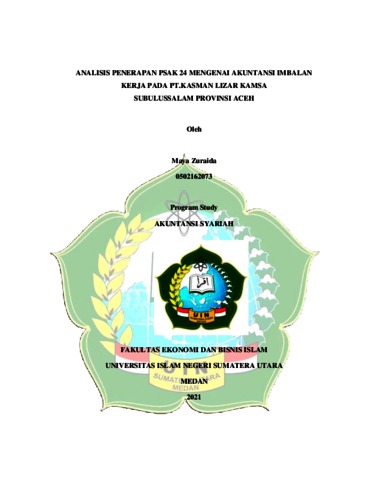 Zuraida, Maya (2021) Analisis penerapan PSAK 24 mengenai Akuntansi imbalan kerja pada PT.Kasman Lizar Kamsa Subulussalam Provinsi Aceh. Skripsi thesis, Universitas Islam Negeri Sumatera Utara.