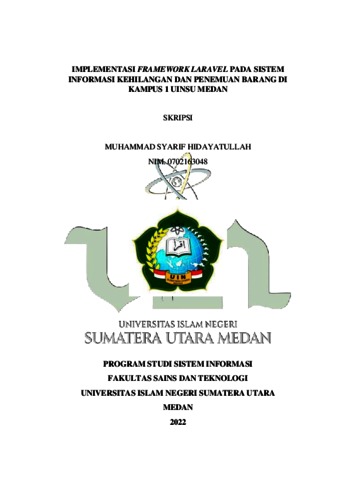 Hidayatullah, Muhammad Syarif (2022) Implementasi Framework Laravel Pada Sistem Informasi Kehilangan Dan Penemuan Barang Di Kampus 1 UINSU Medan. Skripsi thesis, Universitas Islam Negeri Sumatera Utara.