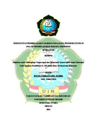 Sambo, Intan Curratuaini (2021) Efektivitas Pembelajaran Daring Pada Masa Covid-19 dalam Pembelajaran Bahasa Indonesia di Kelas III SDN 2 Lawe Loning Aceh Tenggara Tahun Pelajaran 2020. Skripsi thesis, Universitas Islam Negeri Sumatera Utara.