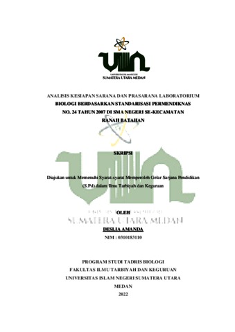 Amanda, Deslia (2022) Analisis Kesiapan Sarana Dan Prasarana Laboratorium Biologi Berdasarkan Standarisasi Permendiknas No. 24 Tahun 2007 Di Sma Negeri Se-Kecamatan Ranah Batahan. Skripsi thesis, Universitas Islam Negeri Sumatera Utara.