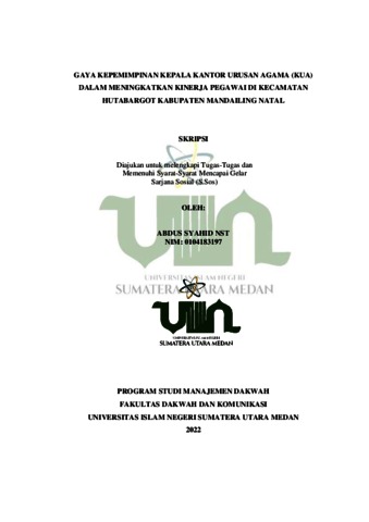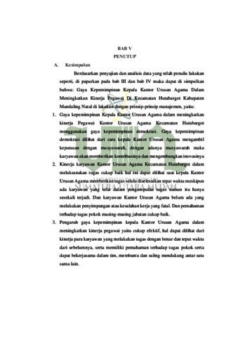 Nst, Abdus Syahid (2022) Gaya Kepemimpinan Kepala Kantor Urusan Agama Untuk Meningkatkan Kinerja Pegawai Di Kecamatan Hutabargot Kabupaten Mandailing Natal. Skripsi thesis, Universitas Islam Negeri Sumatera Utara.