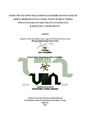 Marliyah, Marliyah (2022) Usaha Petani Sawit Dalam mengatasi Kerugian Dan Solusi Akibat Berkurangnya Hasil Panen Di Desa Tebing Tinggi Pangkatan Kecamatan Pangkatan Kabupaten Labuhanbatu. Skripsi thesis, Universitas Islam Negeri Sumatera Utara.