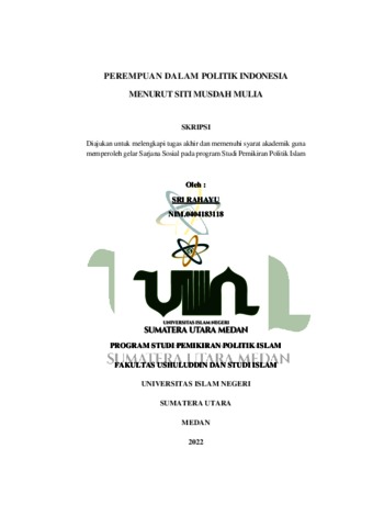 Rahayu, Sri (2022) Perempuan dalam Politik Indonesia Menurut Siti Musdah Mulia. Skripsi thesis, Universitas Islam Negeri Sumatera Utara.