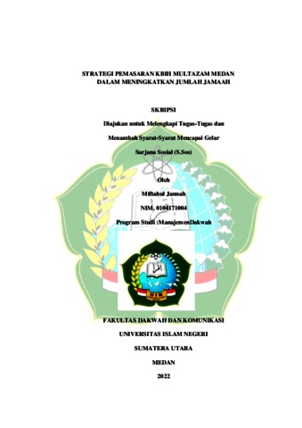 Jannah, Miftahul (2022) Strategi Pemasaran KBIH Multazam Medan dalam Meningkatkan Jumlah Jamaah. Skripsi thesis, Universitas Islam Negeri Sumatera Utara.