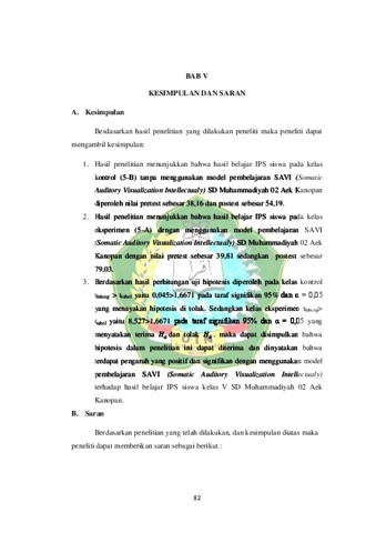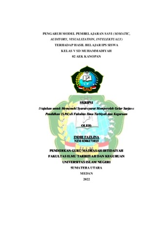 Fazlina, Indri (2022) Pengaruh Model Pembelajaran Savi (Somatic, Auditory, Visualization, Intelektualy) Terhadap Hasil Belajar Ips Siswa Kelas V Sd Muhammadiyah 02 Aek Kanopan. Skripsi thesis, Universitas Islam Negeri Sumatera Utara.