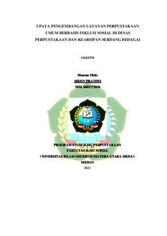 Pratiwi, Meisy (2021) Upaya Pengembangan Layanan Perpustakaan Umum Berbasis Inklusi Sosial di Dinas Perpustakaan dan Kearsipan Serdang Bedagai. Skripsi thesis, Universitas Islam Negeri Sumatera Utara.