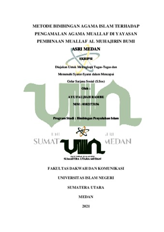 Rambe, Ayu Faujiah (2021) Metode Bimbingan Agama Islam Terhadap Pengamalan Agama Muallaf di Yayasan Pembinaan Muallaf Al-Muhajirin Bumi Asri Medan,. Skripsi thesis, Universitas Islam Negeri Sumatera Utara.